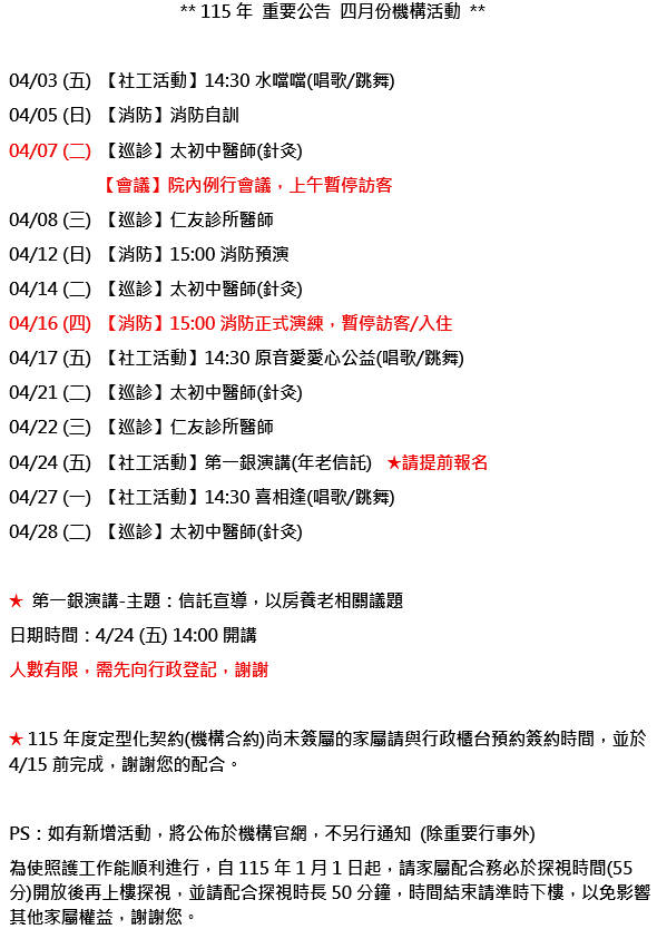 115年04月 重要行事曆
